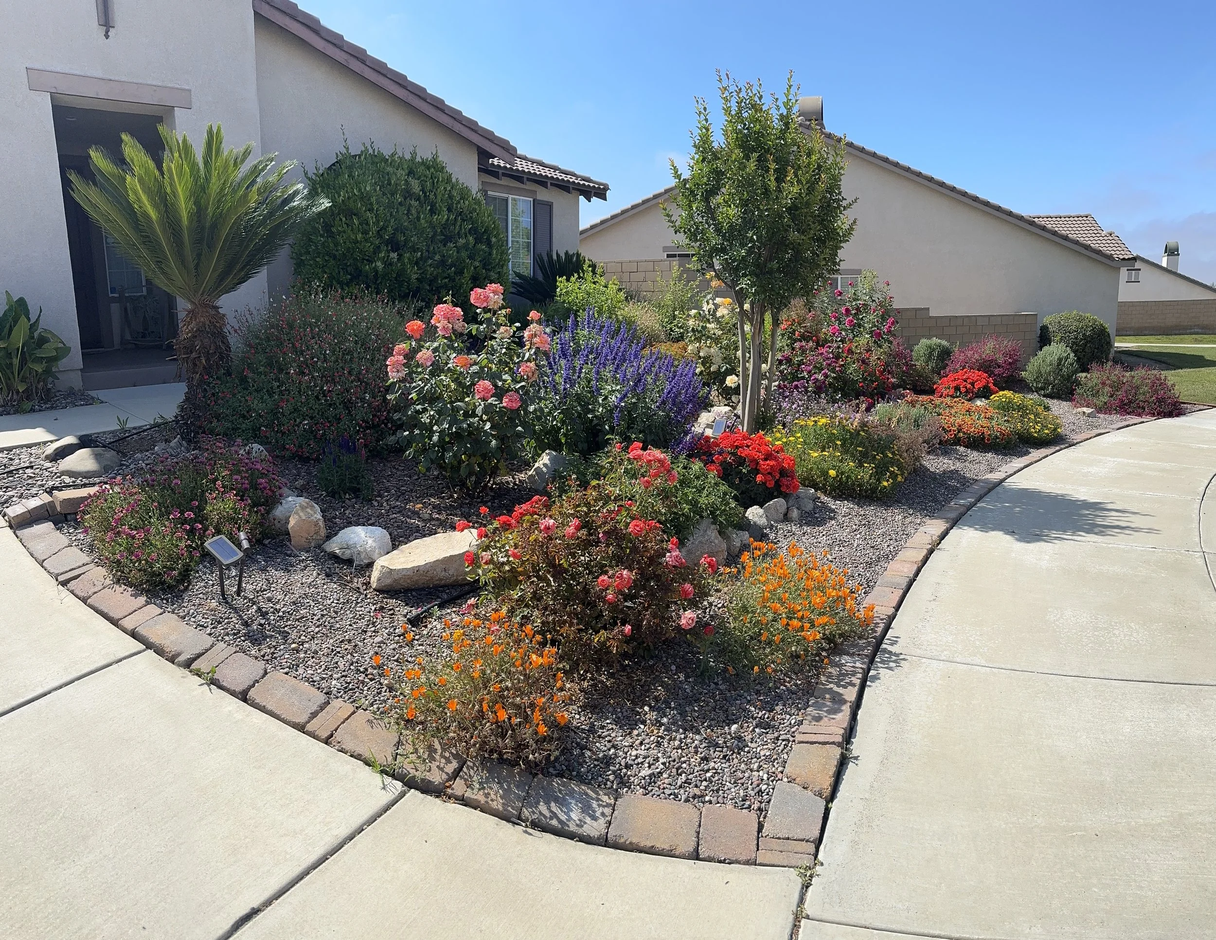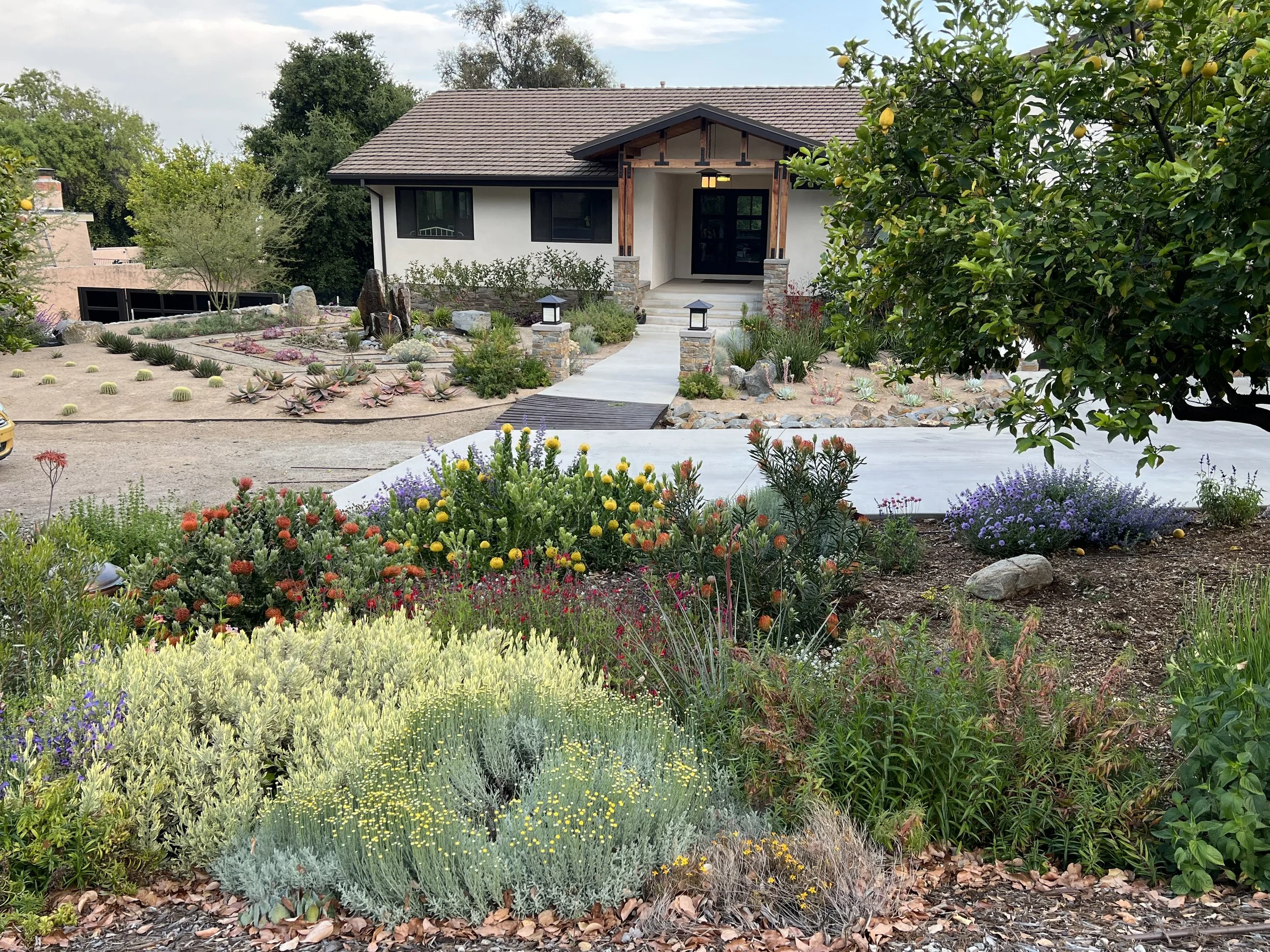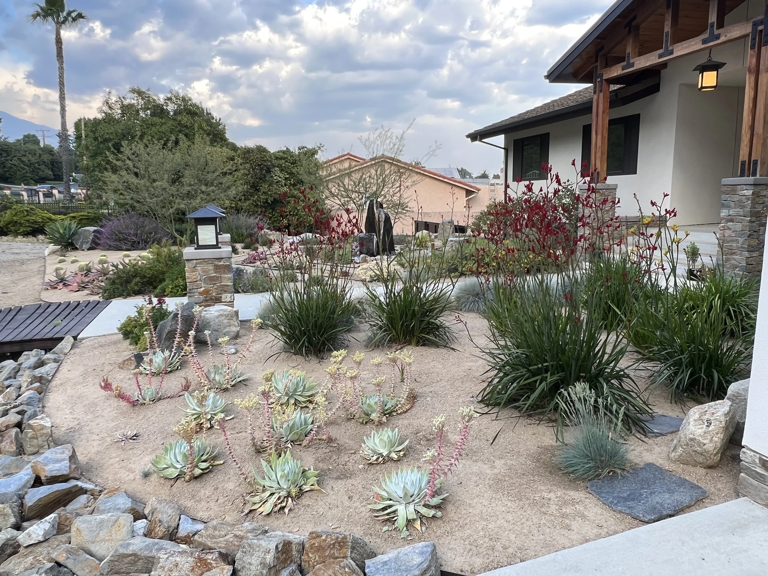 Located in Redlands, the Ebrahim house shows how beautiful drought tolerant landscaping can be and how this landscaping can work in harrmont with any home. The Ebrahim landscape was planted in 2022 and was designed and installed by the homeowner.