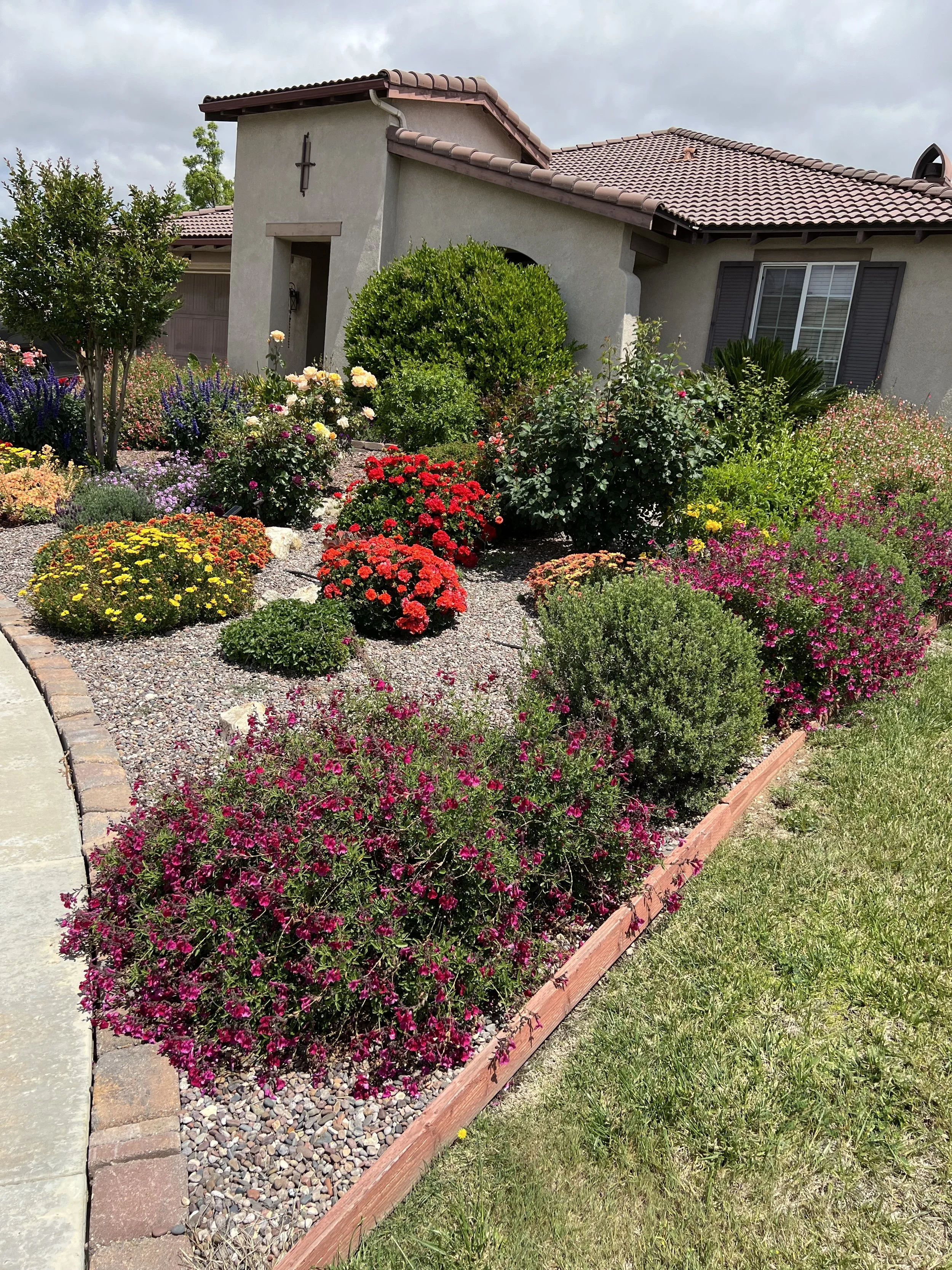 Located in Canyon Lake, the Fonda house brings a rainbow of flowers to its garden, while also creating a welcoming entryway to its home. The Fonda landscape was planted in 2020 and was installed by the homeowner.